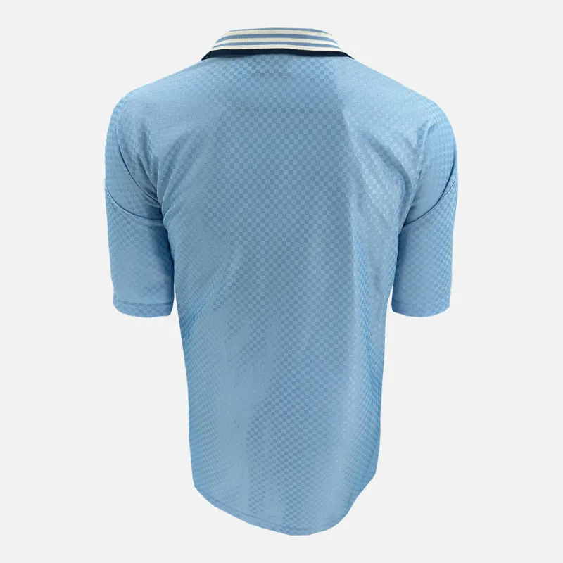 Manchester City Home football shirt from the 1995-97 seasons. Iconic and original 90’s kit with the Brother sponsor across the front, Chequered design with city text and striped traditional collar.