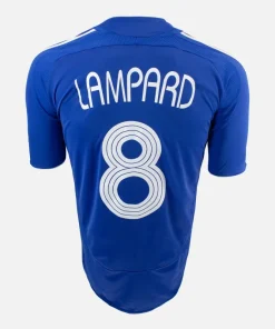 Frank Lampard, Chelsea Home football shirt from the 2006-08. Lampard cup style nameset on reverse, all blue kit with central Adidas logo and white trim, Samsung sponsor across front. Teamgeist logo on sleeve.