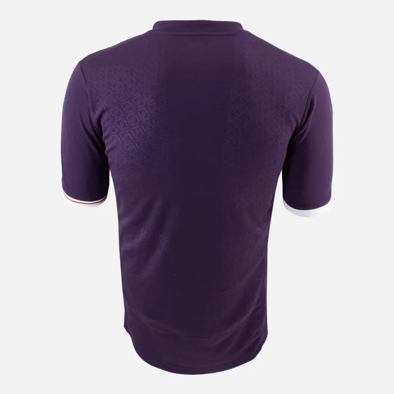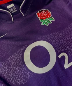 England Rugby away shirt Player authentic version from 2009-10. Bold purple design with white detail and logo embroidery. Pro authentic version featuring fitted material and the O2 sponsor across the front. Grip paneling across chest.
