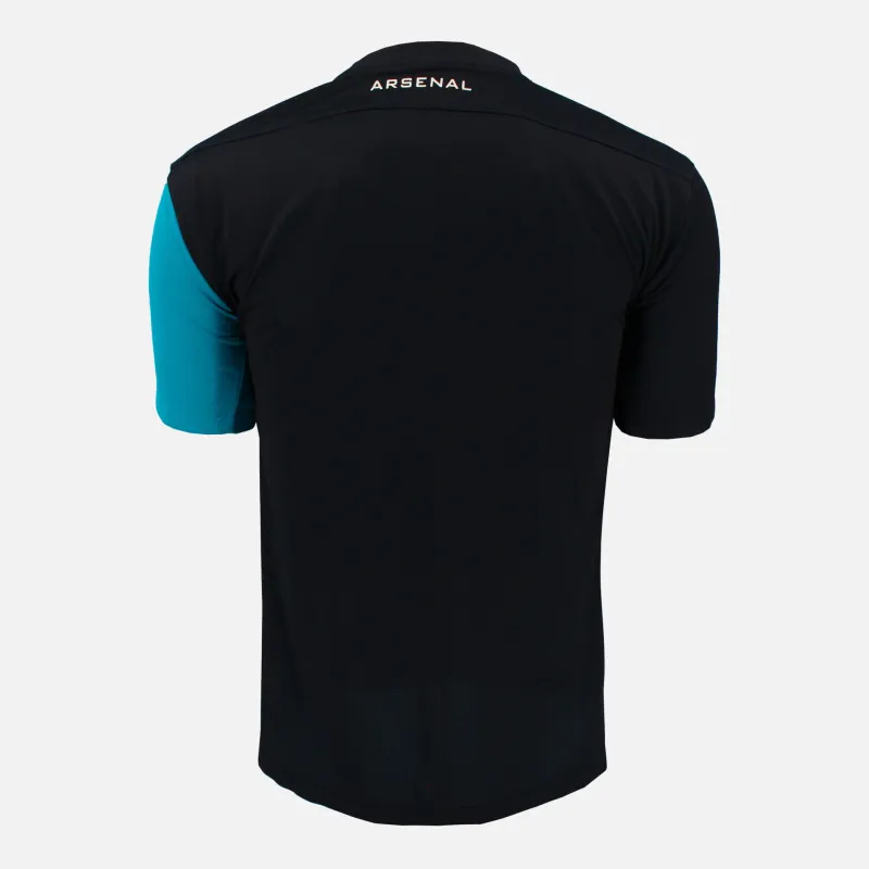Arsenal away football shirt from the 2011-12 Premier League season, 125th Anniversary. This kit features an iconic blue half and half design with Emirates sponsor across the front.