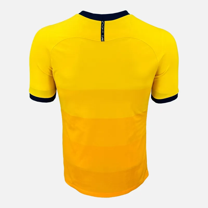 Tottenham Hotspur Third away football shirt from the 2020-21 season. Bold yellow kit inspired by the 1992 football jersey, central badges and gradual vertical gradient design with AIA sponsor across the front.