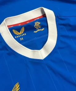 Rangers Home football shirt from the 2021-22 season, 150th year anniversary edition. As worn during the incredible run to the 2022 Europa League Final. Featuring a blue and gold design, 32Red sponsor across the front.