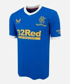 Rangers Home football shirt from the 2021-22 season, 150th year anniversary edition. As worn during the incredible run to the 2022 Europa League Final. Featuring a blue and gold design, 32Red sponsor across the front.