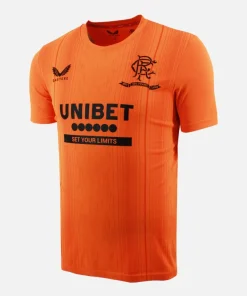Rangers training shirt from the 2021-22 season, 150th year anniversary edition. Orange training kit with unibet sponsor.