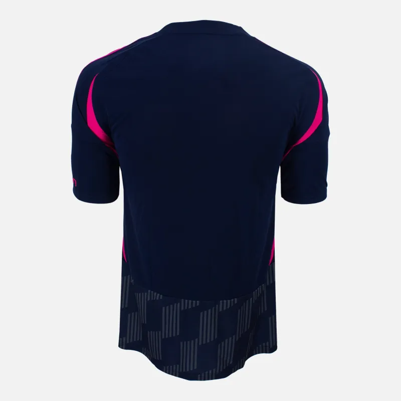 Nottingham Forest Home football shirt from the 2024-25 season. Official Adidas jersey, featuring a navy pattern with pink trim, Kaiyun sponsor across the front.