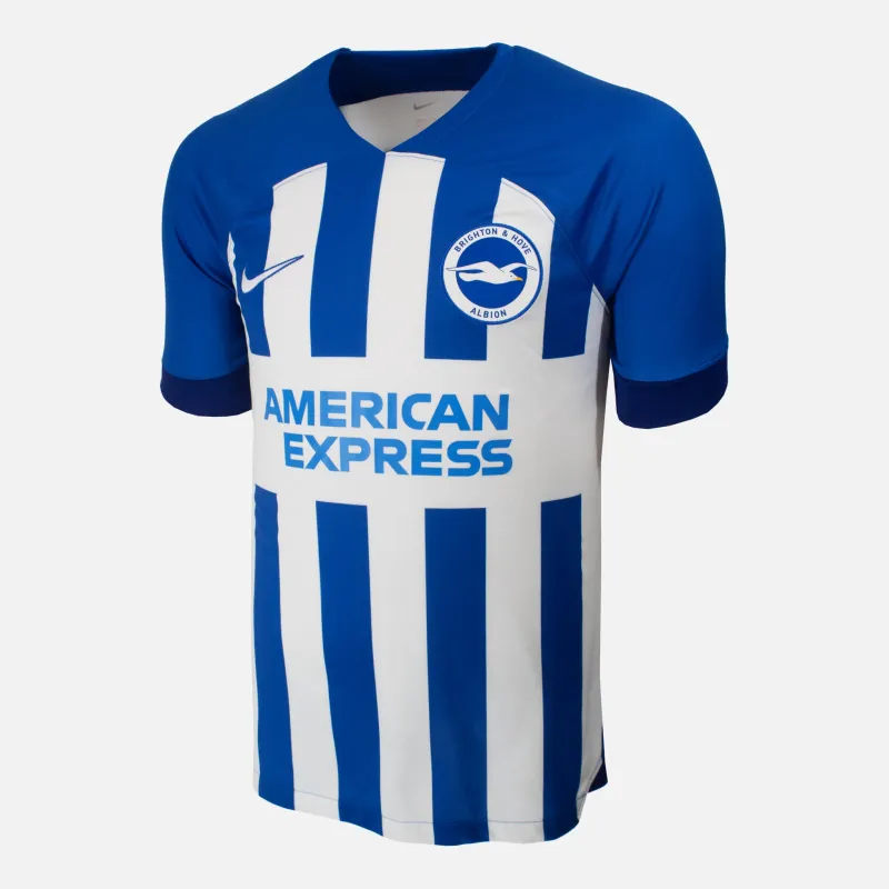 Adam Lallana personally signed Brighton & Hove Albion home shirt from 2023-24 season with Europa League style printing.