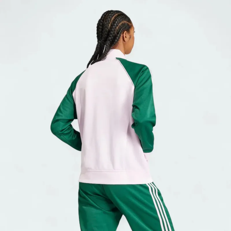 Feel the originality in this Adidas track jacket, inspired by decades of brand heritage and identity. In a classic Clear Pink with contrasting Collegiate Green accents, the relaxed fit combines sporty roots with a casual lifestyle. Oversized design lines create a relaxed look, making it the perfect addition to any wardrobe for comfort and style.