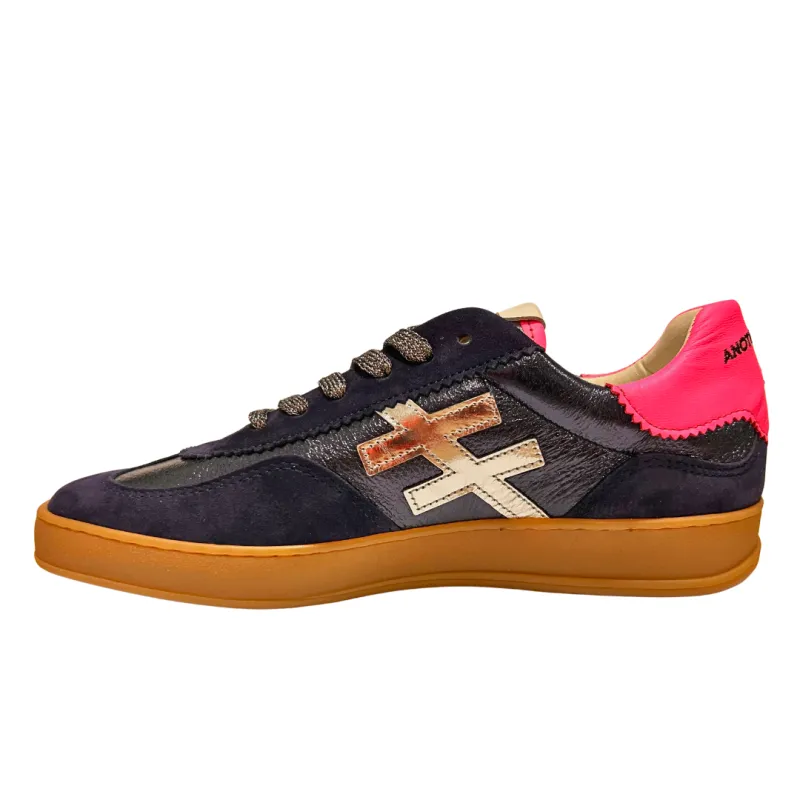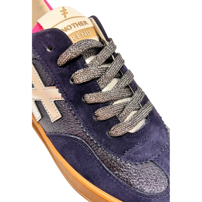 A gorgeous pair of platform trainers for her from Another Trend. These super stylish platform trainers feature a soft blue suede upper with bright leather pink, with Another Trend branding to the side in silver. Lace fastening. A colourful trainer that will complete any outfit this Summer.
