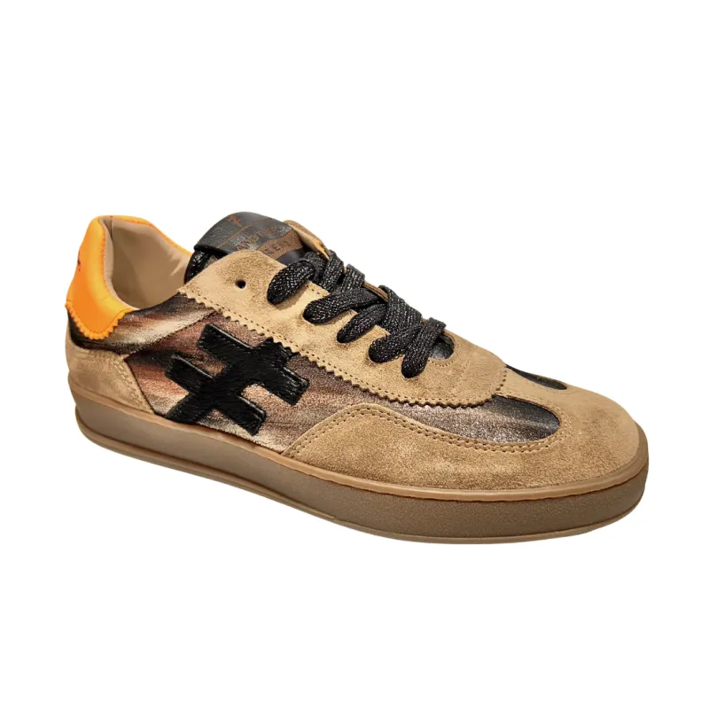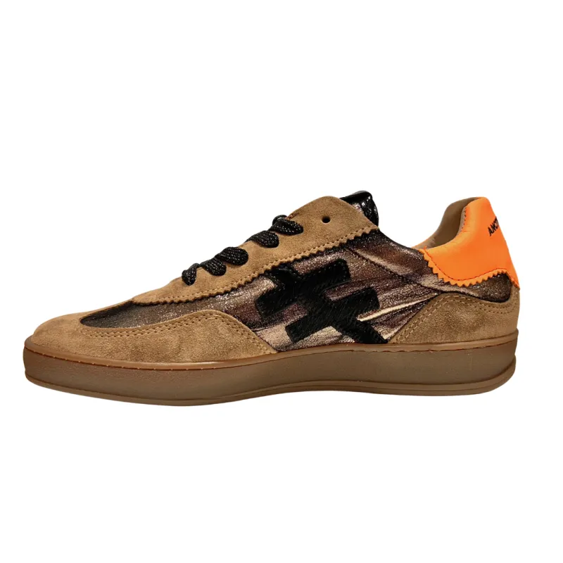 A gorgeous pair of platform trainers for her from Another Trend. These super stylish platform trainers feature a soft brown suede upper with bright orange leather, with Another Trend branding to the side in black. Lace fastening. A colourful trainer that will complete any outfit this Summer.