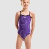 She’s made for motion—and her swimsuit should be too. Our girls’ Fireflow Swimsuit blends a multicoloured geometric print with streamlined comfort. Enjoy the feel of ultra-resilient fabric built for long-term pool use. Slender, supportive straps and a Lightdrop back give it a fluid, athletic fit.