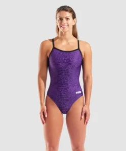 ARENA WOMENS SNAKESKIN SWIMSUIT LIGHTDROP BACK BLACK/PURPLE