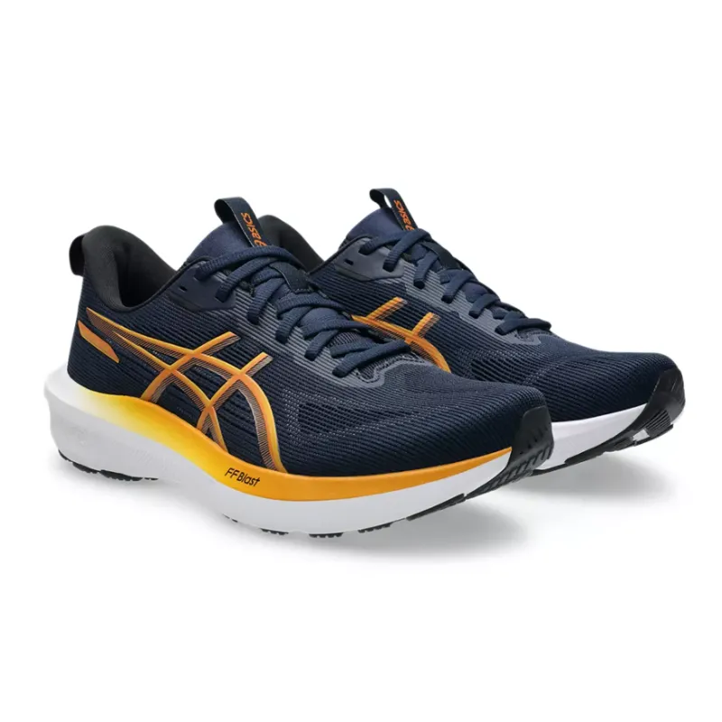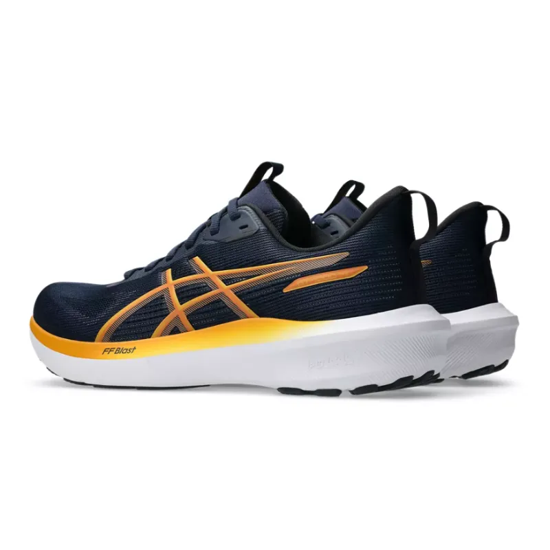 Enhanced with FF BLAST midsole cushioning, experience cloud-like comfort and an energized rebound. The design also integrates a 3D GUIDANCE SYSTEM for improved stability, promoting a balanced and confident running motion. This mens GT-1000 14 trainer is the latest must have from Asics. Finished in navy with orange tones.