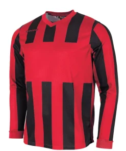 The Stanno Aspire Long Sleeve Shirt is made of 100% recycled polyester with ClimaTec finish and features a sublimated pattern with vertical stripes. On the front side of the shirt you can find a 20 cm high sponsor area. The shirt features Stanno logos and a mesh structure that ensures optimal moisture transport. The shirt has long sleeves with rib cuffs. The shirt also has double stitched seams which makes the shirt extra strong.