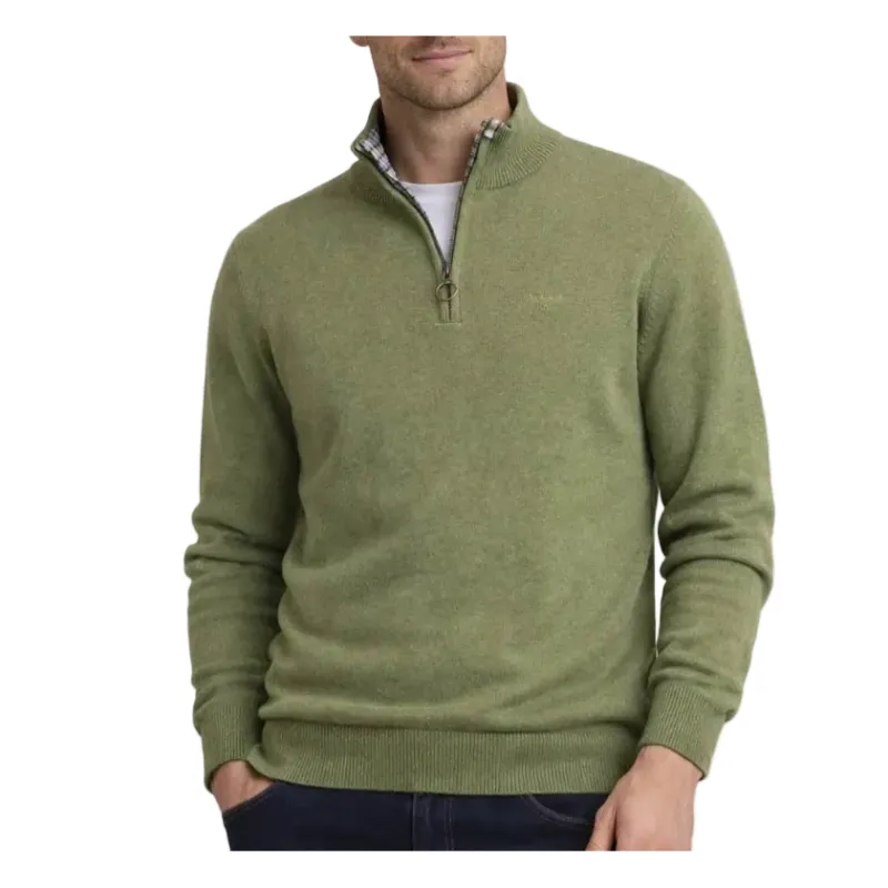 Barbour Mens Cotton Half Zip Knitted Jumper Laurel Green