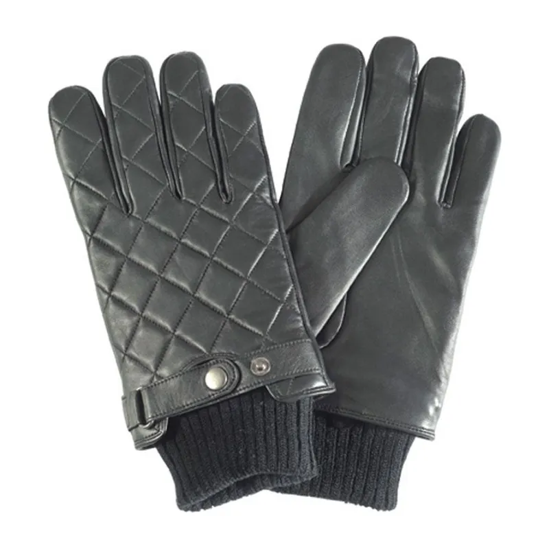 Barbour Mens Gloves Quilted Leather Black
