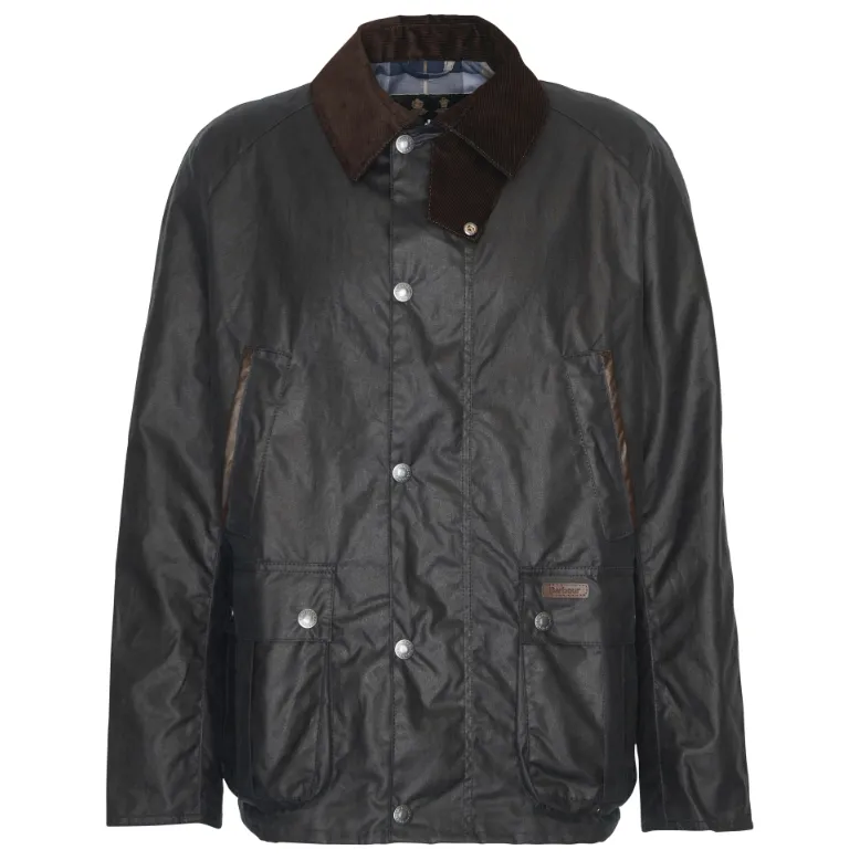 Add this timeless mens Barbour Wax Jacket to your wardrobe this season. The Halton Wax Jacket is a classic piece featuring a 6oz waxed cotton outer for waterproof finish, a cotton lined interior with an internal tartan inner back yoke and a needlecord collar and throat tab. Fastened by a full length zip with stud closures and complete with two hand pockets, two pleated bellow pockets and brown leather trim. Finished with Barbour branding to the back of the neck and there is side stud fastening to allow for a little extra room in the jacket.