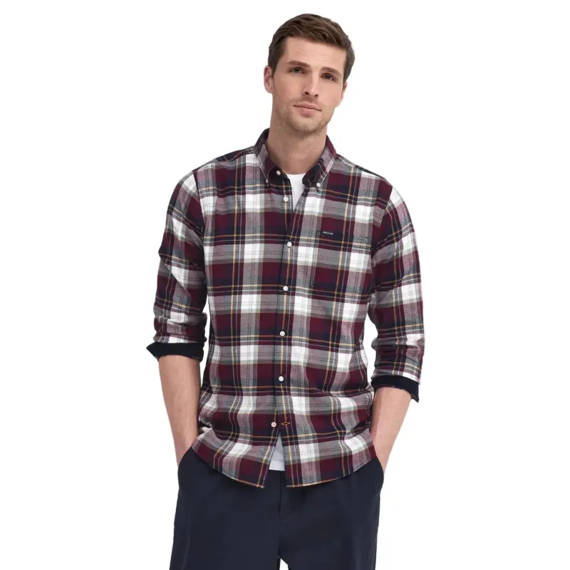 Barbour Mens Shirt Crossfell Tailored Checked Merlot