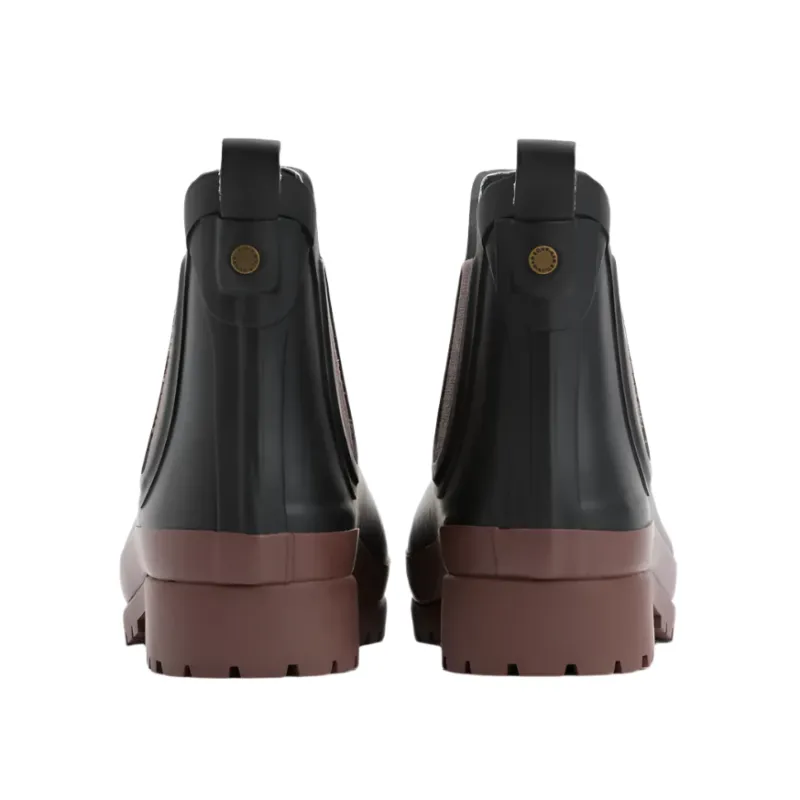 The Barbour Mallow boots in black and vicuna are the perfect combination of heritage style and modern practicality. With their classic Chelsea boot shape, contrasting brown outsole, and stretchy side gussets, these waterproof boots offer comfort and flair for daily wear – whether you’re in town or out in the countryside.