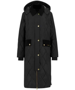 The Barbour Meredith Quilted Jacket for women is a stylish and practical choice for cooler weather. This longline jacket boasts a prominent diamond quilt pattern and includes a versatile detachable hood for added warmth and element protection. It features a secure closure with a stud placket concealing a zip, and extended rib cuffs enhance comfort while keeping the cold at bay. A touch of heritage charm is added with Barbour’s signature tartan lining the hood and featuring in the internal buggy lining.