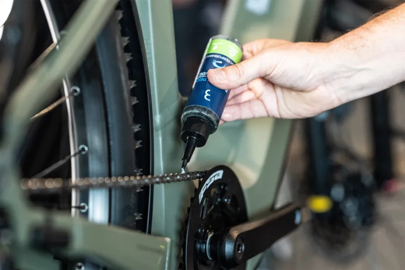 - High-performance bike chain lubricant made from plant-based materials.