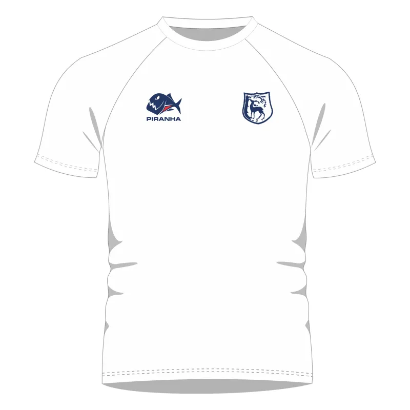 Lightweight white shirt to be worn as alternate strip. Featuring Piranha logo printed on right breast, as worn, and Berkshire Hockey logo printed on the left.