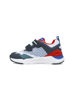 A lightweight and cool boys trainer from Biomecanics perfect for all his active adventures. In a knitted textile upper in white with navy and red accents. Featuring two velcro straps, perfect for little hands. Textile lined