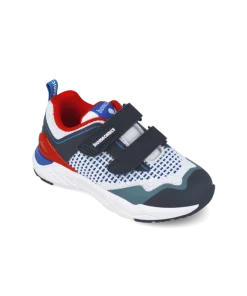 A lightweight and cool boys trainer from Biomecanics perfect for all his active adventures. In a knitted textile upper in white with navy and red accents. Featuring two velcro straps, perfect for little hands. Textile lined