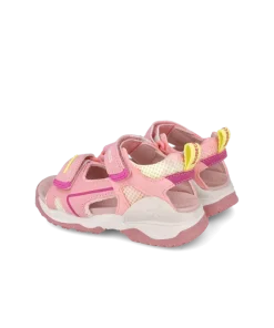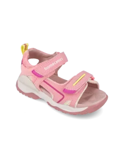 A sweet girls sandal from Biomecanics for her. Soft and flexible, designed to offer protection in uncontrolled environments. So they can walk confidently! BioLinning micro-perforated Biomecanics innovative BioLinning system made up of microfibers with a leather-like feel, does not fade and favours EVAPORATION within the shoe. antibacterial insole and a BioLinning micro-perforated lining system for dry and healthy feet. Finished in pink and white with pink lining. With two velcro straps to ensure the best fit.