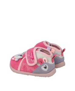 - Soft felt upper in bright chicle pink with cute embroidered bunny design