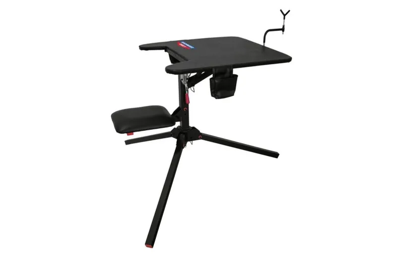 Experience Unlimited Shooting Lanes With This 360 ̊ Swivel Action Seat And Bench Top. 12” Wide X 14” Deep X 2” Thick Seat Provides Ultimate Comfort, While The 29” Square Bench Top With Extended Arm Rests And Padded Vinyl Cover Provide All Day Comfort While Shooting. Two Shell/Gear Pouches Are An Added Feature With An Adjustable, Coated Gun-Rest To Accommodate Any Hunter. Weight Rating Is 300 Lbs. And Bench Weighs 38lbs.