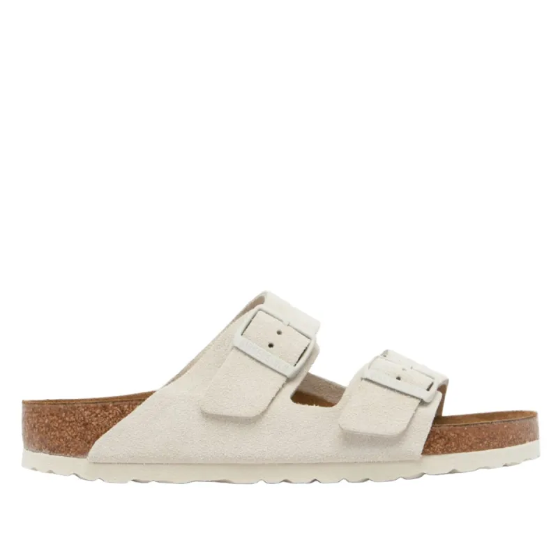 The Arizona Sandal from Birkenstock is just what you need this summer to add to your collection. Slip into comfort with the original anatomically shaped cork-latex footbed. Crafted in a light sand colour suede. Fastened with two adjustable straps and matching coloured buckles. In a narrow fit.