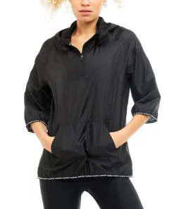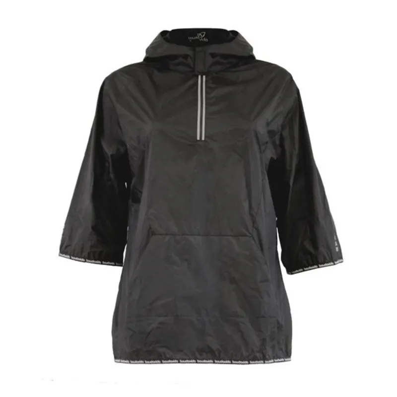 A loose-fit women’s packable rain jacket that folds away neatly inside an attached compartment. Completely water resistant for outdoor fitness with a hood and functional zip fastening, designed to withstand any sudden downpour.