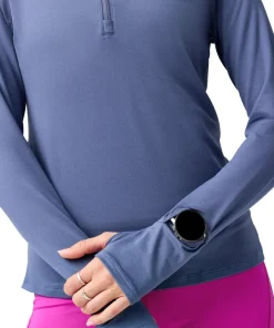 The softest layer in your running wardrobe just got an upgrade — our women’s half zip running top has a watch window so you can stay warm and toasty when you check your pace.