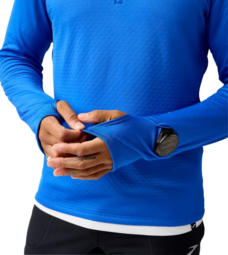 Key features are designed for warmth and visibility. Watch window lets you check stats without exposing skin, thumbholes keep sleeves in place, and reflective hits help improve visibility.