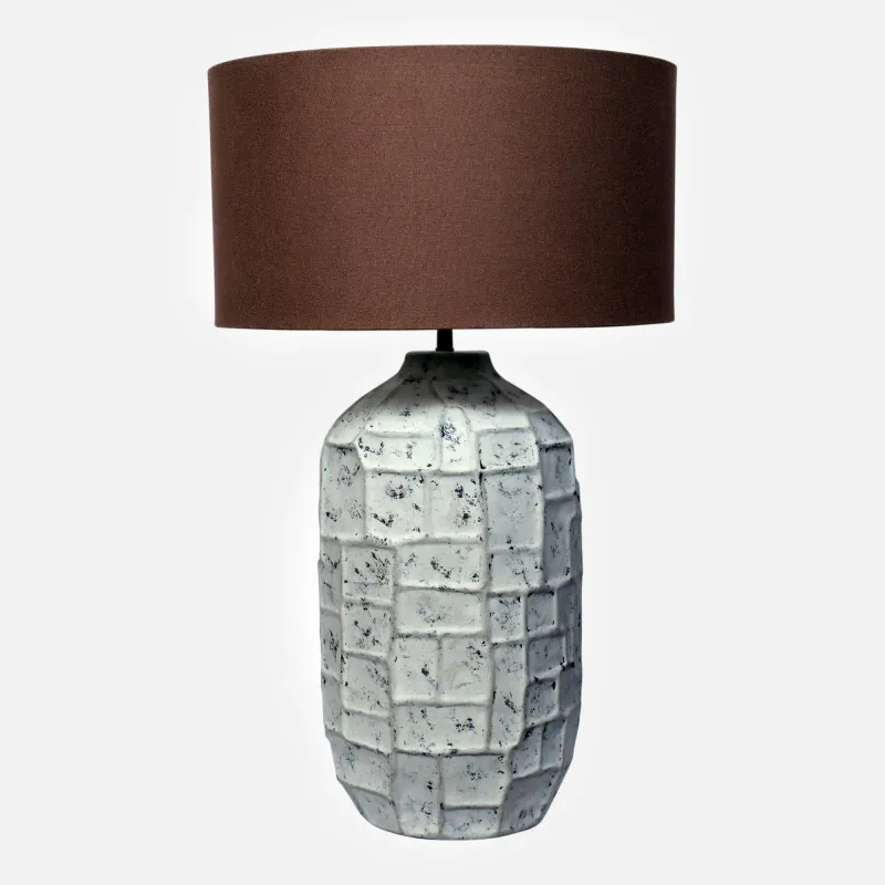 Excellent design is in the details, and the details in this stunning Brown & Grey Sculptural Lacquered Table Lamp make a big style statement. As soon as you lay eyes on this modern table lamp, it will be love at first sight. This table lamp is like a work of art with unique features—a textured metal base with a pattern that’s reminiscent of antique tin ceiling tiles, and a large, eye-catching brown shade that pops against the lighter lamp base. This gorgeous table lamp makes decorating any space, effortless. We love this Brown & Grey Sculptural Lacquered Metal Table Lamp for its character and versatility. It’s designed to suit a living room side table, entrance table, bedroom end table or dresser, home office or place of business. No matter where you need some light to read or for ambiance, this is the perfect modern table lamp to add brilliance to your space.