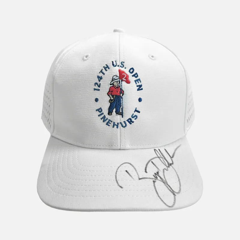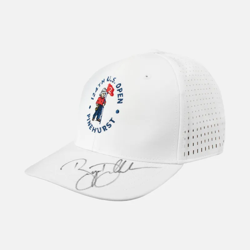 Bryson DeChambeau personally signed 124th US Open Pinehurst hat. Autograph on brim featuring the US Open embroidery. DeChambeau held his nerve on the final day, to fend off Rory Mcllroy and win his second major championship. Hydro cap is brand new with tags.