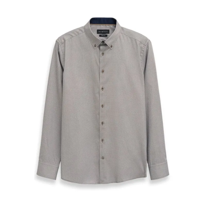 This Bugatti shirt features a refined all-over micro pattern in earthy tones, perfect for those who appreciate subtle sophistication. With a button-down collar and contrast inner collar trim, it offers a clean silhouette that easily transitions from business-casual meetings to weekend dinners. Finished with warm-toned buttons, it’s a contemporary classic built for versatile wear.