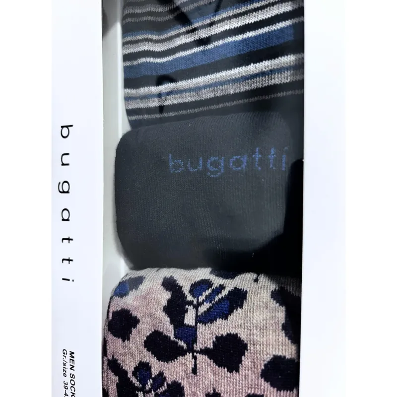 This pack of 3 mens socks from Bugatti is a great addition to any mens collection. In navy with various prints to pick from. Perfect for your own collection or as a gift.