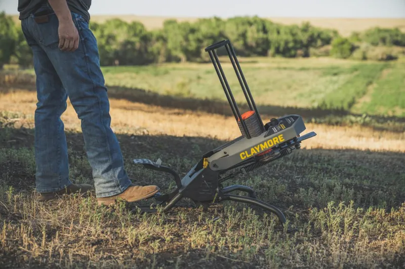The Caldwell Claymore is the first manual, battery-free clay target trap to feed from a 50 clay target magazine. The Claymore is foot-operated; just push the pedal with your foot to cock, load, and launch clay targets up to 55 yards.