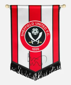 Chris Wilder personally signed Sheffield United club pennant. Official club banner with Sheffield United crest and black tassels. Approx 30x24cm.