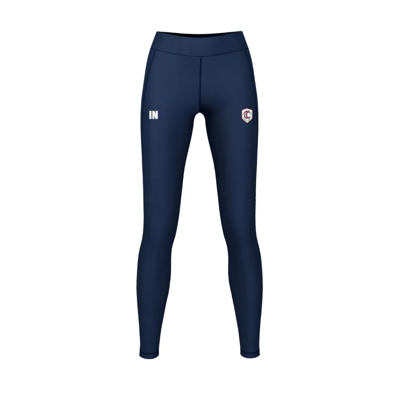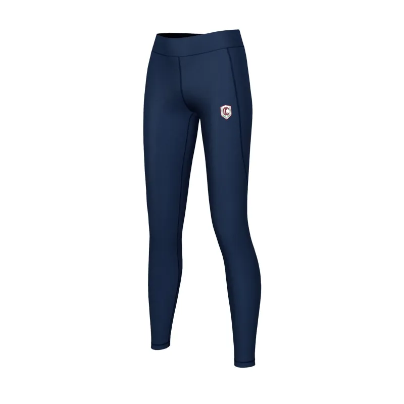 Lightweight fabric with thermal qualities including school crest on left leg as worn.