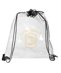 Clear waterproof plastic swim bag with school crest.