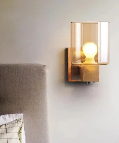Add a touch of contemporary elegance to your living space with this Cognac Modern Glass Wall Sconce. Featuring a sleek wooden frame paired with a cylindrical glass shade, this wall sconce brings warmth and sophistication to any room. The natural wood finish creates a cozy atmosphere, while the clear glass shade allows for a beautiful, ambient glow, perfect for accentuating your bedroom, living room, or hallway decor.