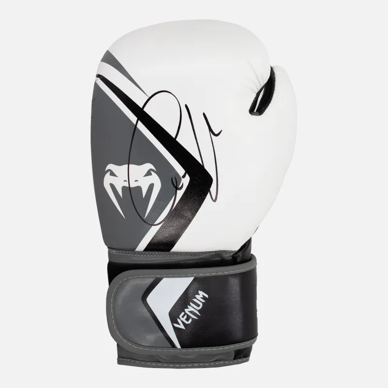 Conor McGregor personally signed boxing glove in white with black and grey detail, Venum Contender 2.0 glove 16oz weight. Left hand glove. Legendary autograph from one of the greatest UFC fighters and personalities.