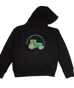 Introducing our Embroidered Tractor Hoodie for kids – a tribute to rural life.