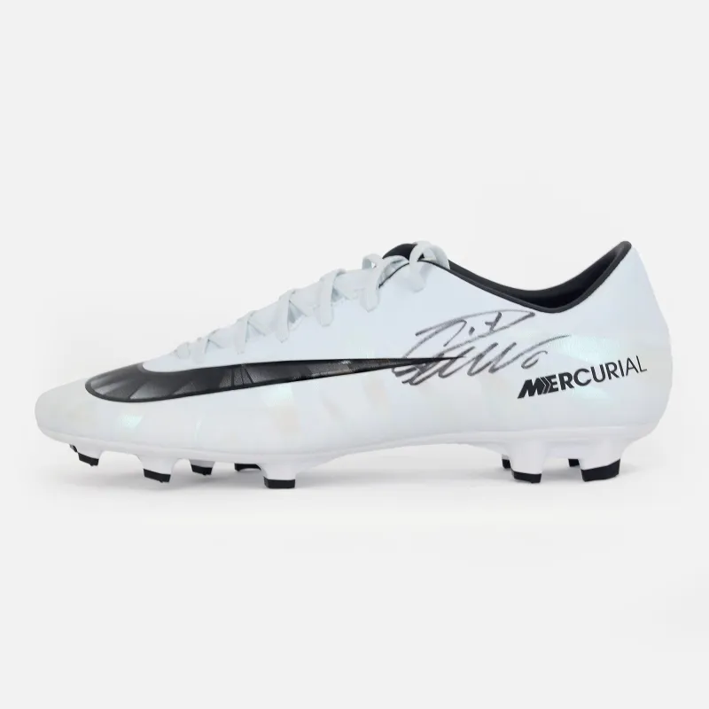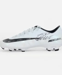 Cristiano Ronaldo personally signed Nike Mercurial Victory VI CR7 football boot. Authentic autograph from one of the greatest players of all time. This is the Victory VI CR7 model from Nike’s Mercurial line, released during the peak of Ronaldo’s dominance with Real Madrid, when he was collecting Ballon d’Ors and breaking goal records year after year. The Mercurial range is inseparable from Ronaldo’s career, built around speed, precision and explosiveness, and the CR7 editions carry his personal signature and branding.