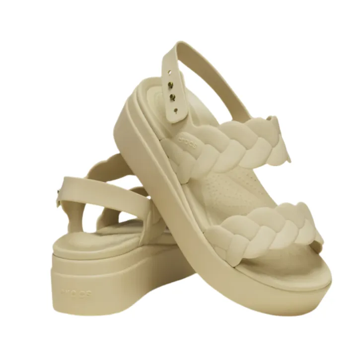 Crocs Womens Sandal Brooklyn Woven Upper Low Wedge Chai