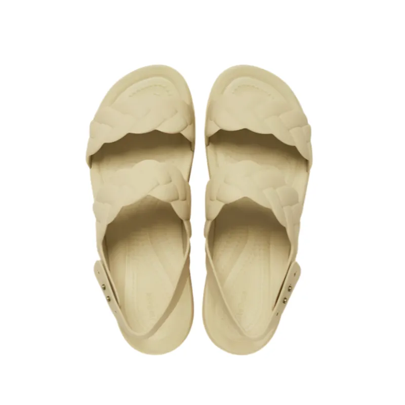 The ladies Brooklyn Woven Upper Low Wedge Sandal from Crocs is a light weight, statement piece this summer. Slip into comfort with the slingback strap and two wide straps over the upper, woven to add a stylish look. Adjustable Smart Buckle heel straps with pushpin closures make on and off effortless. In a beige sand colour, with a 47mm wedge heel height.