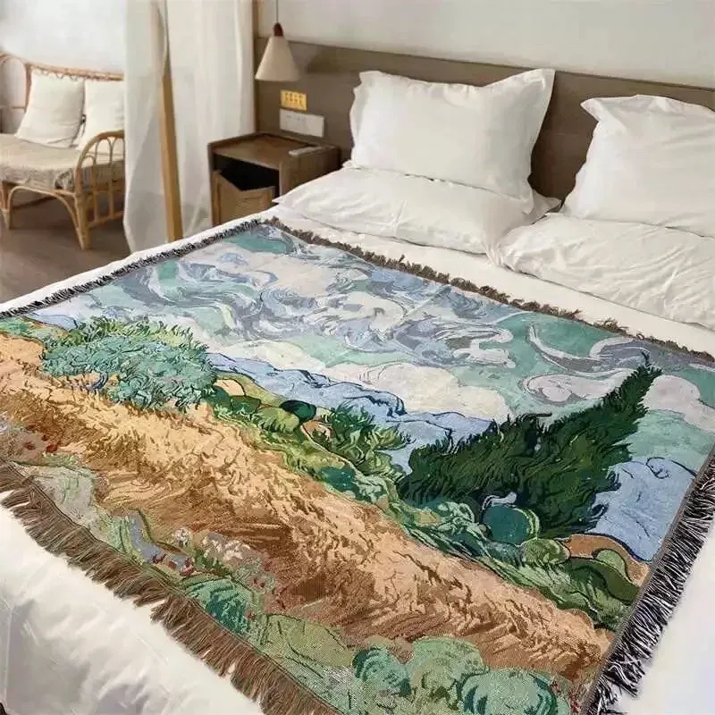 Whether you use it for warmth or as a decorative accent, this throw is a timeless fusion of comfort and creativity. Elevate your home with a touch of fine art and experience the serene beauty of nature in every thread.