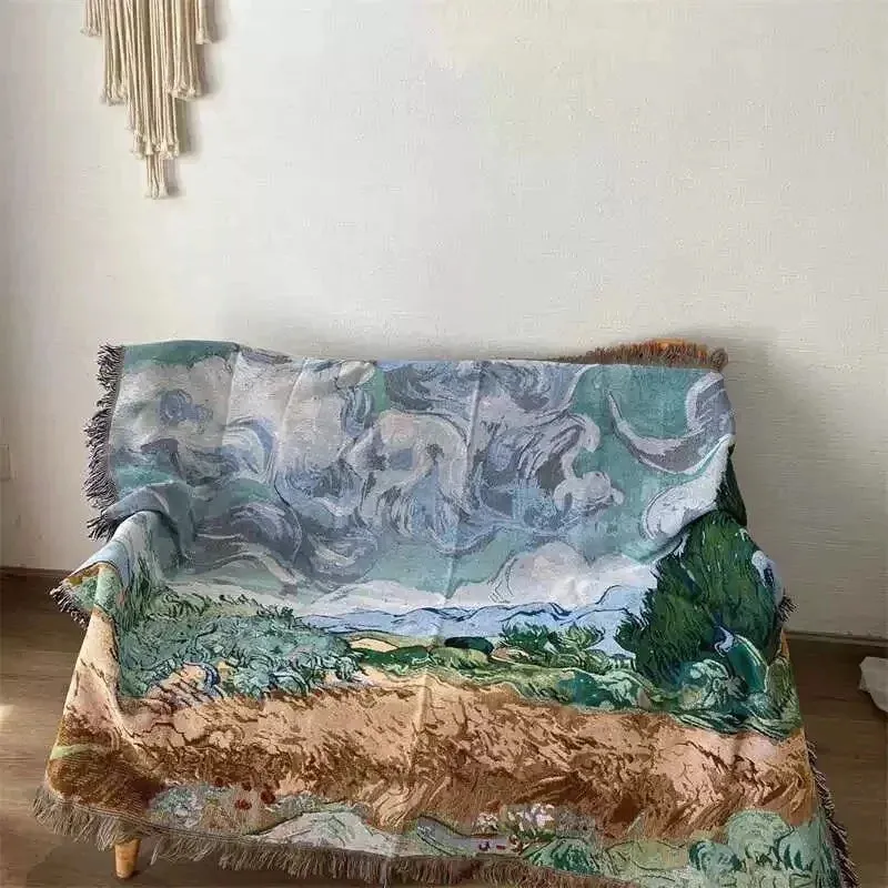 Designed for versatility, this throw is ideal for draping over beds, sofas, or chairs, adding an artistic statement to any room. The intricate jacquard weaving technique ensures rich colors and remarkable detail, making it a functional piece of art. Lightweight yet warm, it’s also a perfect companion for travel, camping, or relaxing outdoors.